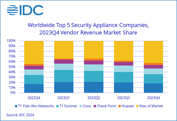 Source: IDC Worldwide Quarterly Security Appliance Tracker Q4 2023, March 7, 2023 |