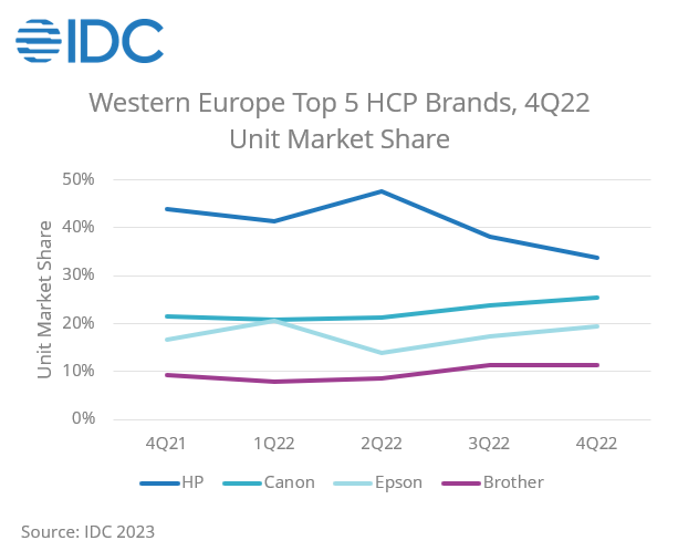 • Source: IDC Worldwide Quarterly Hardcopy Peripherals Tracker, February 2023.