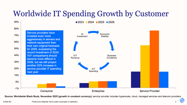 “AI is the headline of IT market performance in 2025, but most of the actual AI investment this year is concentrated in service provider infrastructure,” said Stephen Minton, Group Vice President at IDC. “This AI investment is partly supported by enterprise spending on core IT products and services, which make up the strong revenue streams of the service providers investing heavily in AI deployment. In turn, this AI investment is supporting economic growth and stability, which in turn is supporting the ability of businesses to maintain their investments in cloud services and enterprise software. As a result, we’re currently experiencing a virtuous cycle of tech-driven macroeconomic growth.”