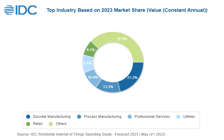 NEEDHAM, Mass., June 20, 2023 – Worldwide spending on the Internet of Things (IoT) is forecast to be $805.7 billion in 2023, an increase of 10.6% over 2022, according to a new International Data Corporation (IDC) Worldwide Internet of Things Spending Guide. Investments in the IoT ecosystem are expected to surpass $1 trillion in 2026 with a compound annual growth rate (CAGR) of 10.4% over the 2023-2027 forecast period.